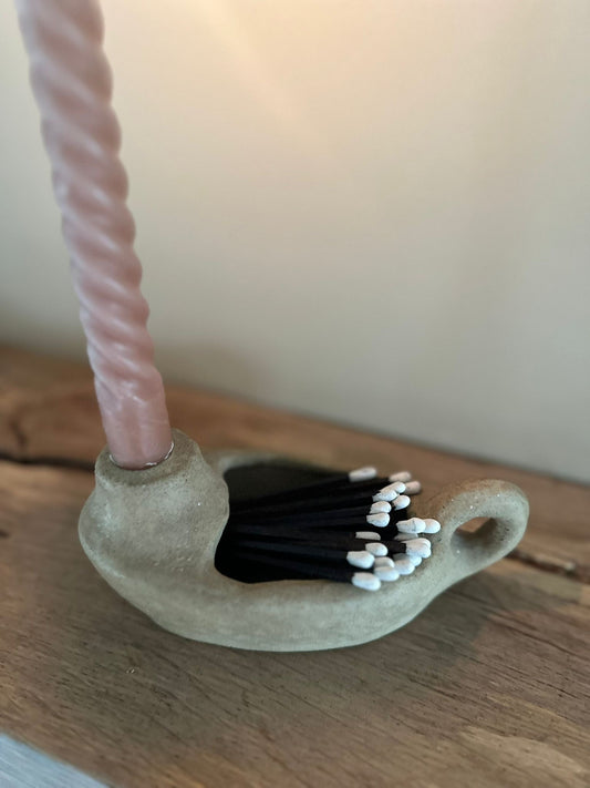 Studio pottery chamber candle & match holder
