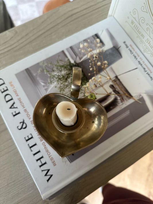Rare vintage heart shaped candle chamber stick brass