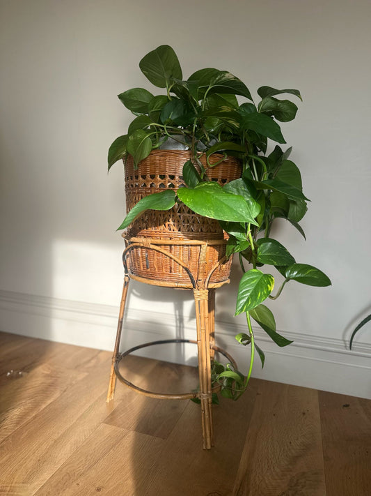 vintage wicker tall plant stand and basket