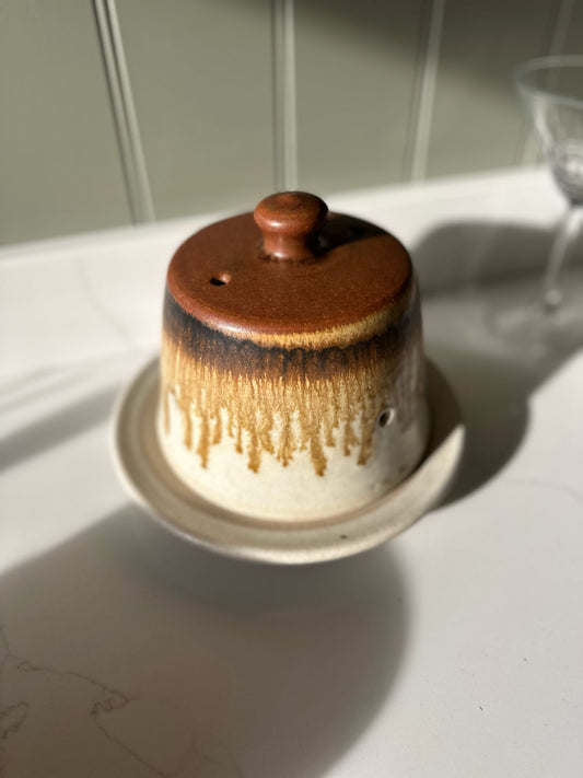 vintage cheese dome / butter dish studio pottery