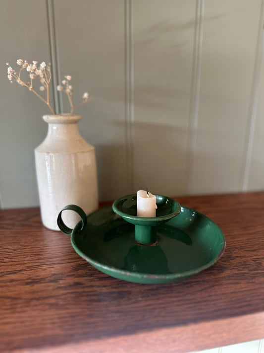 military green enamel chamber stick candle holder