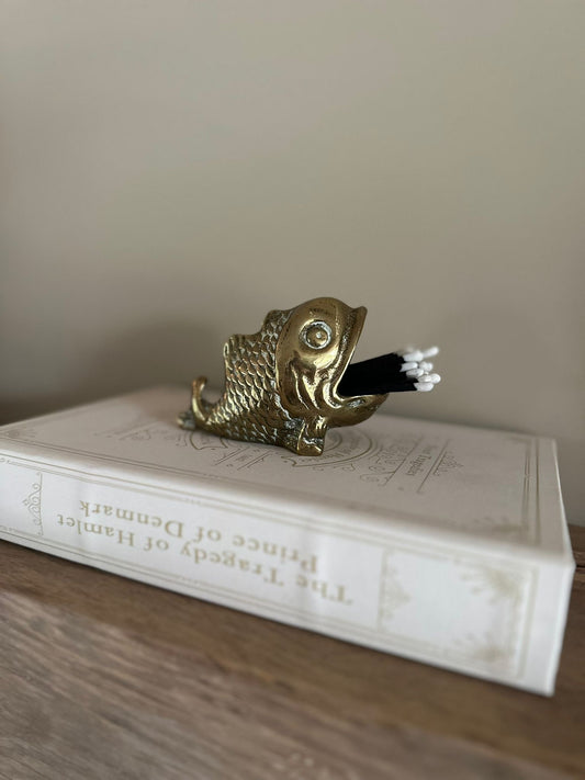 Sold outVintage brass fish match holder