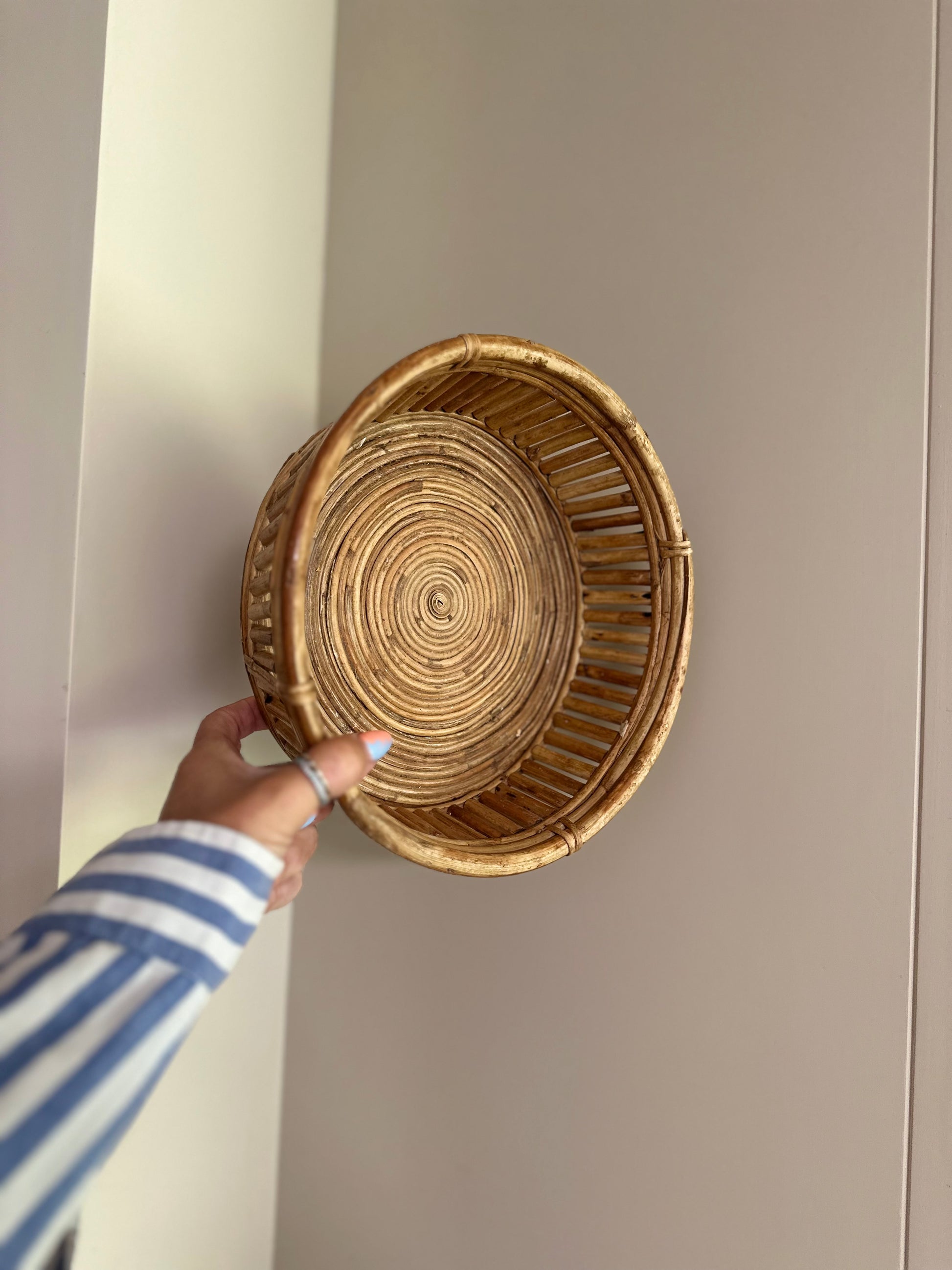 1970s vintage rattan fruit basket